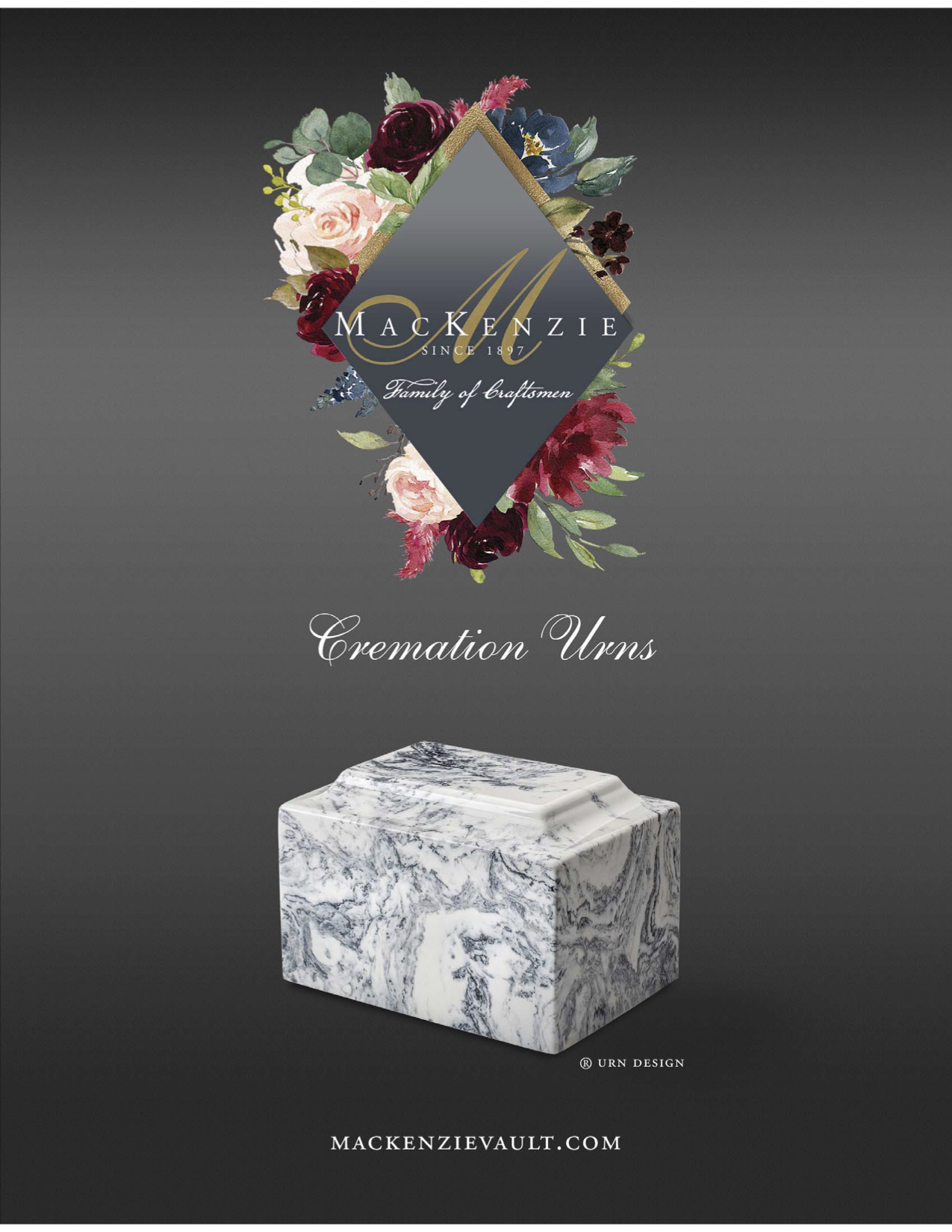 MacKenzie urns are designed for display or for placement in a cemetery crypt or grave. MacKenzie Urns can be engraved with clip-art, personal information, or text selections.