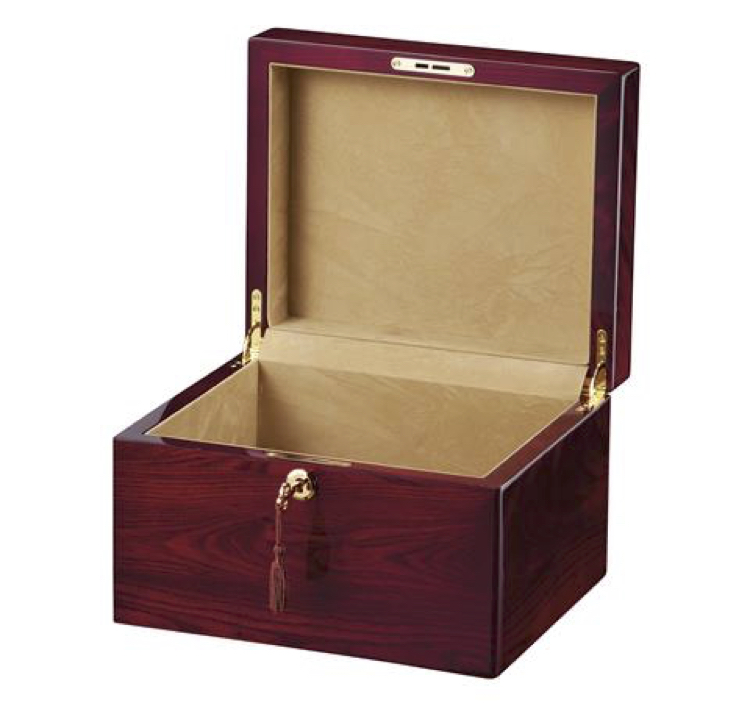 Howard Miller cremation urns are available in several finishes. All finishes are select hardwoods or veneers. The urns come with brass hardware and functional lock. This type of urn is frequently used at a memorial serivce where cremated remains are to be scatterd afterwards and the urn can be kept as a memento box. All models are velvet lined. A price list is included in the catalog below.